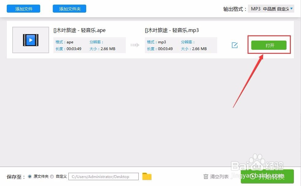 3、最后点击“开始转换”就可以了,转换后的文件直接点击“打开”按钮就可以查看了;