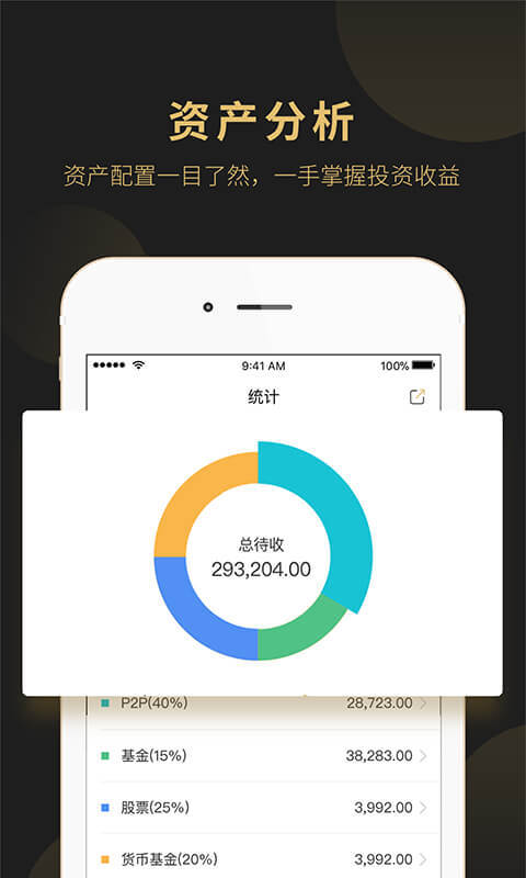 支持平台:陆金所、红岭创投、团贷网、爱钱进、宜人贷、积木盒子、小微金融等上百家热门P2P理财平台的投资数据记账管理,资产状态实时把控;