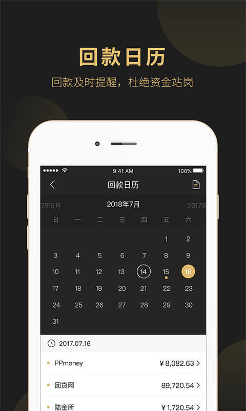 超便捷的回款日历及回款闹钟功能,当月到期项目自动提醒,投资记录准确展示,对账无忧;