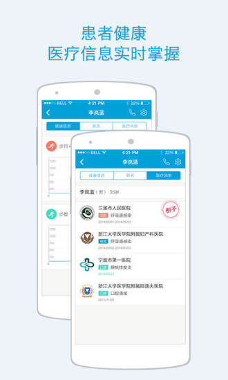 -----患者医疗健康记录:可实时查看并了解基于患者授权的患者在蓝牛医护开放医院的门诊、住院、体检就诊记录,包括检验检查报告、诊断、处方等信息,以及患者授权的蓝牛健康端个人健康信息。