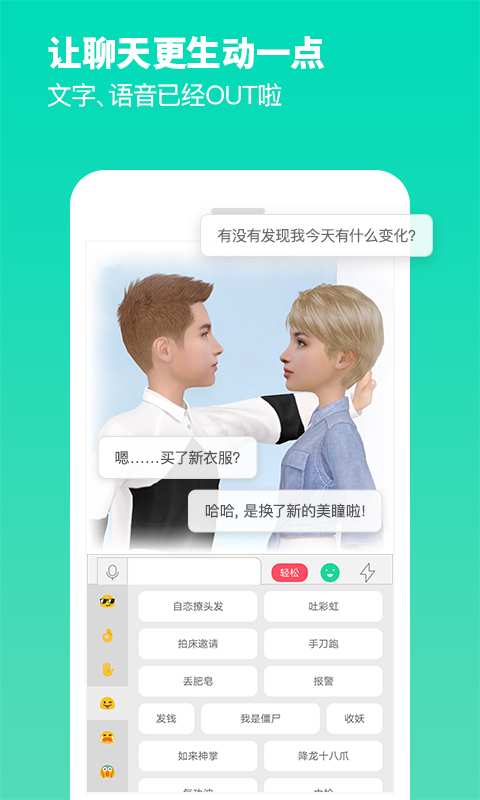 3. 厉害的化身聊天系统,让你用生动无比的肢体语言表达自己,斗图已经 out 了啦,快来斗pose,让你的朋友笑出眼泪!