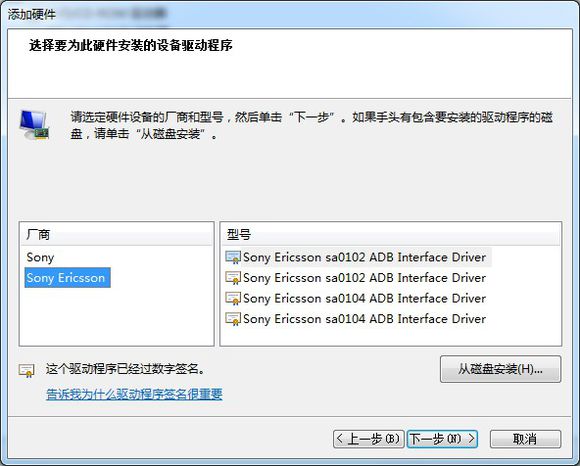 找到“Sony Ericsson sa0104”,点击下一步