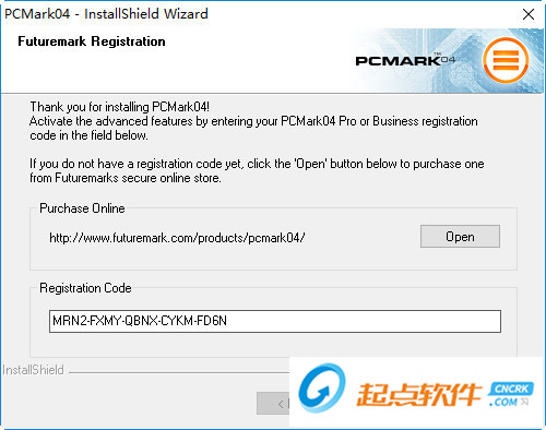 5、当弹出“futuremark registration”窗口时,用户只需要将注册码:MRN2-FXMY-QBNX-CYKM-FD6N复制“Registration Code”方框内,再次点击“Next”即可。