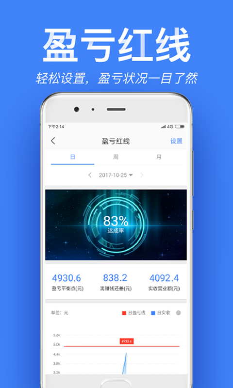 用户可以自动获取每日每店的盈亏红线数据,自动分析每天的营业状况是否达到预期 让你知道自己的门店是否挣钱,从什么时候开始挣钱