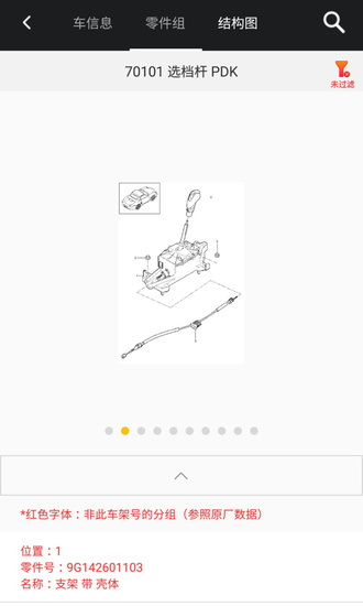 1、通过车架号匹配到汽车所有的全车配件数据,包含配件结构图片,替换件,组件,价格以及试用车型;2、车型查询可以匹配到同款车所有配置的配件数据,零件号查询可以直接查询零件的详细配置说明;