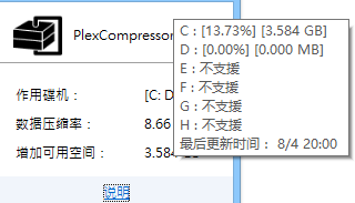 PlexCompressor是一套智能压缩软件:1. 能够针对使用者长时间未使用的档案进行压缩,以达成节约空间的效果。