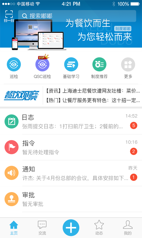 餐饮培训、餐饮绩效、餐厅制度管理、餐厅QSC巡检、餐厅审批、餐厅考试、餐厅考勤、餐厅排班、提成管理、重要指标提醒、指令下达、企业文化、部门职能、员工手册、规章制度、服务程序与标准、企业案例、工作时序、员工关怀、客人评价等多项功能,一个移动餐饮管理软件就行。