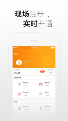 注册便捷—手机端自助注册,1分钟注册完毕,可立即使用。任性台卡—扫描宝只要一个二维码,放置桌面搞定所有消费者。