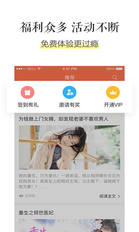 4.实惠没有之一:免费小说专栏天天更新,签到能赚钱:每日签到换阅读币,签的多,领的多看的多,免费追书就是这么简单。