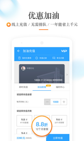 加油享受超低折扣,年省上千元,全国范围内的中石油和中石化加油站通用,自动充值5-10分钟可到账、在线支付充值失败100%退款、到账短信通知全程VIP人工服务。