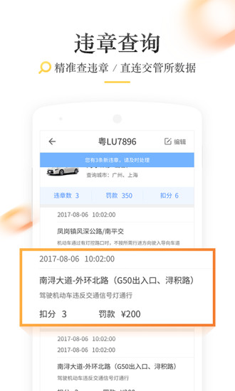 「违章查询」支持全国各大城市的违章查询服务,直连省市车管所,更快速、更准确地查询车辆违章情况。