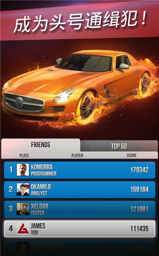 Highway Getaway的网上排行榜,与Face book进行了关联,让你驾驶冲上排行榜的顶端,与你的朋友们和其它全球排行榜竞争对手们竞争。 你是最快的跑路司机吗?
