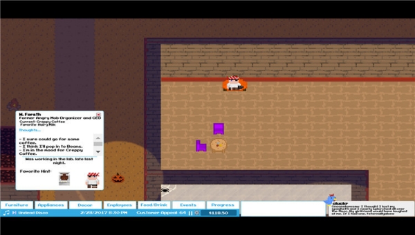 疯狂的事件将要求你随时准备改变你的游戏玩法。一辆满载老年人的观光巴士停在外面吗?还是你决定举办当地乐队的即兴演出?新客户大量涌入,电话线路很长,顾客越来越不耐烦,即将离开!确定顾客想要什么并交付它。给你的员工新的订单,摆出更多的椅子和桌子,在菜单上多放些,并得到甜美的小费!那个硕士学位是不会自行支付的!