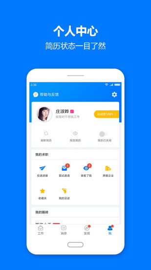 访客、面试、关注,三个与求职者强关系的数据一目了然的展示,突出了职业生涯的过程,累加,沉淀。