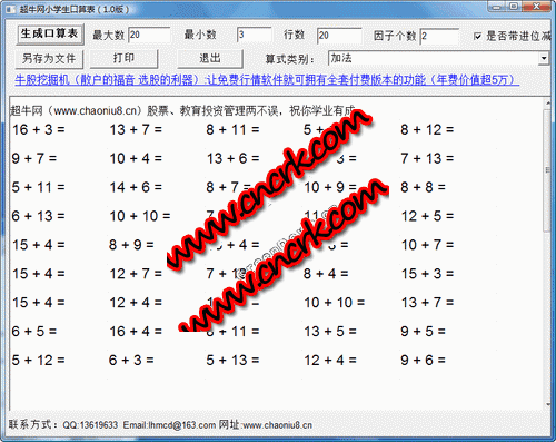 超牛网小学口算表让你自己东西给您的孩子制作任意四则运算口表,从每日一练中逐步提升您孩子的笔算和口算能力。