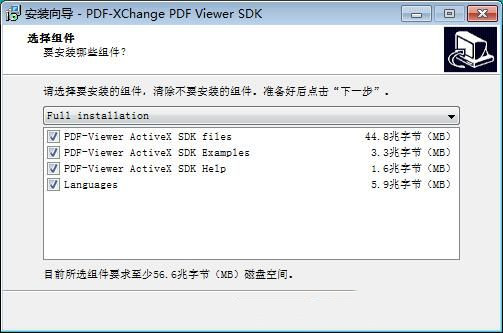 我们需要选择安装组件。我们可以选择PDF-Viewer ActiveX SDK files、PDF-Viewer ActiveX SDK Examples、PDF-Viewer ActiveX SDK Help、Languages;