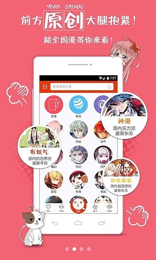 分类涵盖题材,精选和作者3种方式,个性化推荐满足漫迷们的挑剔口味;特有的智能搜索引擎,海量关键词汇搜索引导,不再让好漫画轻易从指尖错过!