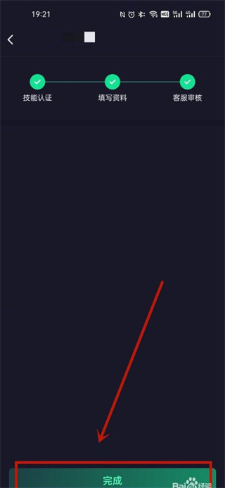 6、最后点击操作完成后,进行技能认证、填写资料,待客服审核通过后,点击【完成】即可。