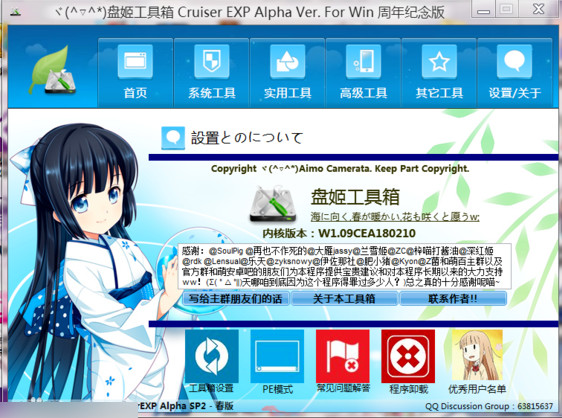 盘姬工具箱CruiserEXP for Win版是一款以萌化为主题的绿色综合整合包;它集成惹一些Win平台你所能想或不能想到大大小小的功能;你可以利用它修复抢救设置或者优化美化你的电脑,利用它恢复管理搜索你或别人本地或网络上的文件,利用它搭建服务器抓包或分享热点,利用它解码任何文件或辅助你的开发工作,甚至是破解VIP下载限速图像内容识别等等也可以实现;