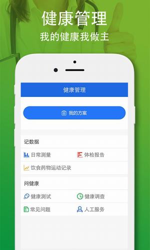 健康百科:健康管理从“知”开始。从菌群、营养、疾病多个角度出发,提供丰富的健康知识,定期推送新鲜的健康资讯。健康管理:我的健康我做主。下设记数据、问健康和看方案3大板块。记数据板块为用户提供血糖、体重、血压、排便等多项日常检测数据,以及体检报告,饮食、药物、运动、睡眠等日常生活习惯的记录功能和回顾功能。问健康板块包含简单的健康自测、健康调查问卷反馈、常见问题查询和咨询服务。看方案板块基于用户填写的数据、问卷、测试等信息进行综合分析,制定个性化的健康管理方案,方便用户及时进行健康管理方案的调整。