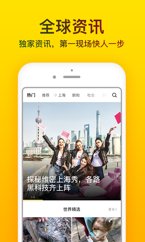 200多位专业视频编辑团队,每天出产500条独家、原创精品短视频,提供全球范围内最新鲜和最专业的资讯内容,让你足不出户,60秒看懂全世界!