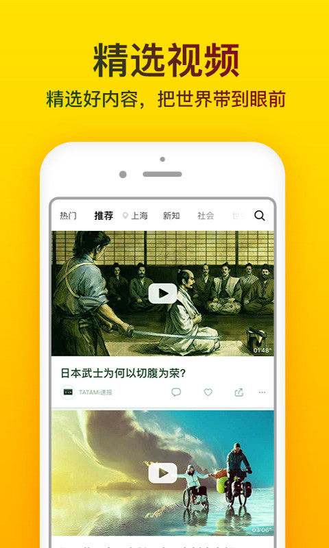 SNH48、一条、二更、暴走大事件、蘑菇街、动感101、彩虹室内合唱团、拜托啦学妹、芒果TV、发条视频、罐头视频、百度胥渡吧、校园老司机、一席、日食记、更上海、联合国、一介视频、谷阿莫、奇妙实验室、飞碟说、NowThis、联合国、僵小鱼、凹凸视频……总有一款适合你!首页就是你的兴趣,推荐更精准!