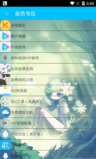 2、选择功能,有qq功能,其它功能和会员专区