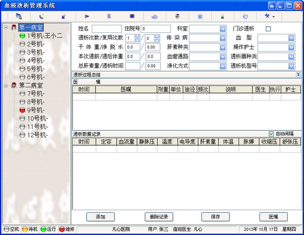 血液透析管理系统是一款专为诊所中的透析室科室人员所提供的管理系统软件。该软件可根据病室的房号进行血液透析数据、信息管理和分析,还可一键传送数据给各个医师,提高诊疗的速度。