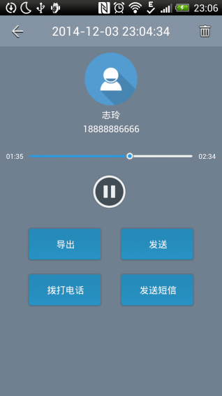 3. 所录声音音质清晰,软件内自带播放功能,也可轻松导出至SD卡,或者通过邮件、微信等发送;