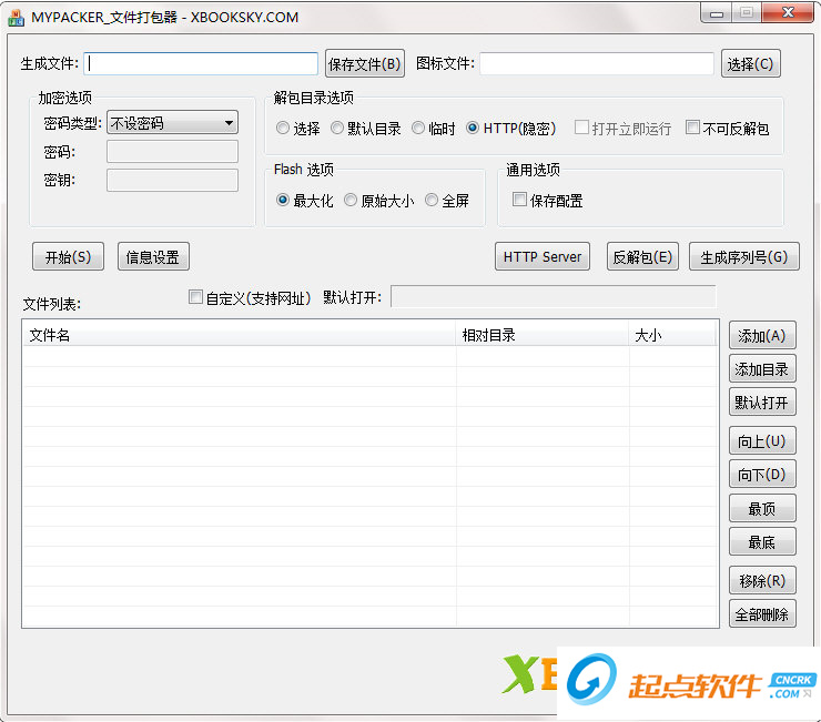 HTTP(隐密):不解包,使用HTTP方式,在打包Flash SWF、HTML或任何支持HTTP方式的文件时使用。用户可用于将多个SWF或html文件打包成一个文件,最后的打包文件打开时具有HTTP服务功能