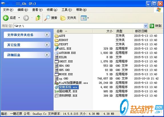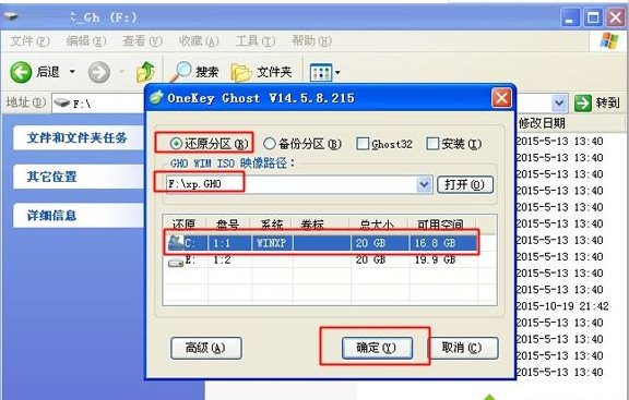 2、双击“安装系统.exe”打开OneKey Ghost,选择安装在C盘,确定;