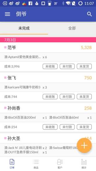 倒爷是微店、微商、微信朋友圈卖东西必备的记账小软件。本人就是一个混迹于朋友圈的小卖家,经常搞不清楚每笔订单有没有收到货款,有没有给上家付款,有没有发货,别人问我每件商品的售价或者代理价,常常也搞混了。所以,一直在找一个适合自己的记账工具,找了好久没找到,于是任性一把,自己做一个。反正我自己目前用着挺满意^_^