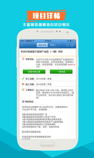 【工程信息】及时准确严格核实的信息发布,确保每一个联系方式都是有效沟通【附近工程】以用户所处的位置为基点,定位最近的项目信息,省时省力,就近出发