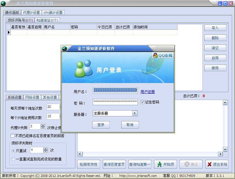 3、根据知道对顶好评每个IP使用次数的限制,软件提供了代理换IP和ADSL换IP功能。