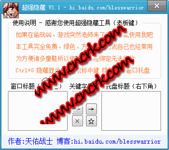 完全免费、绿色、实用一个非常小巧的老板键,但是非常实用,特别适合上班族、和学生。如果在偷玩qq、游戏突然老师来了手忙脚乱快用我吧