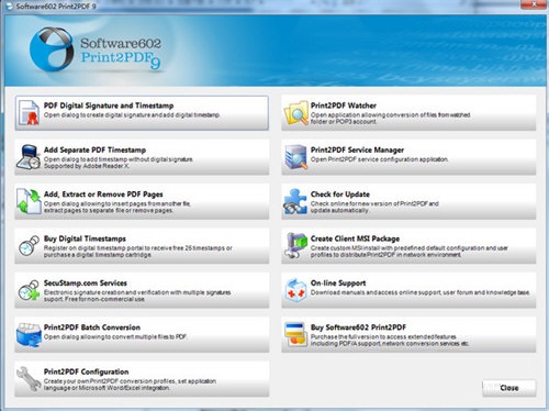 轻松分发网络共享Print2PDF打印驱动程序到客户端工作站。 控制PDF格式转换优惠,安装配置文件,并允许微软Office整合。