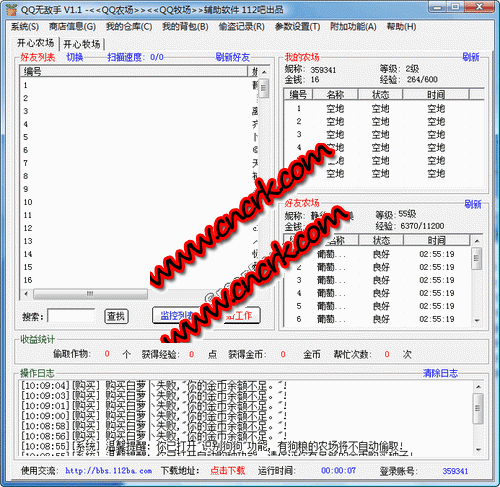 QQ无敌手 V1.1 简体中文绿色免费版 qq无敌手是一款qq农场牧场的辅助程序,可以自动播种的功能,浇水的功能,除草的功能,除虫的功能,修改了功能设置窗口,收获功能,盗取功能,商店购物功能,我的背包功能,好友帮助达到上限自动暂停,偷盗记录统计功能,辅助功能定时退出、定时关机功能