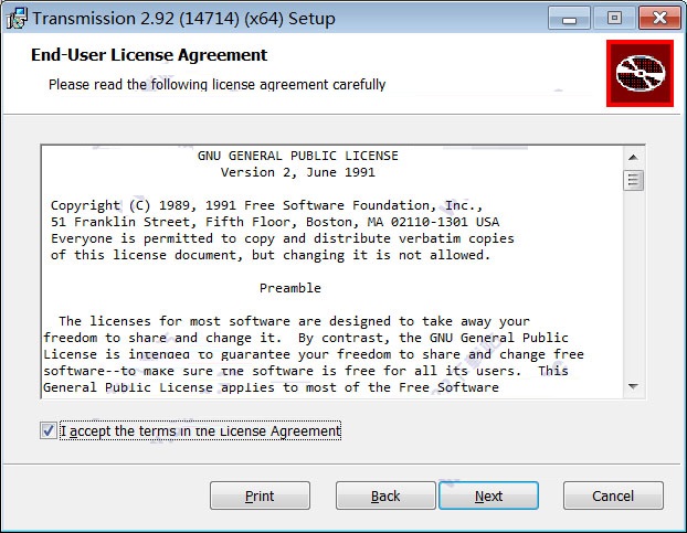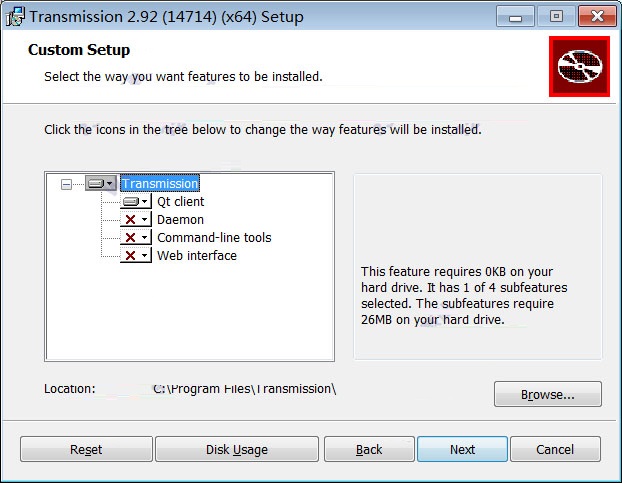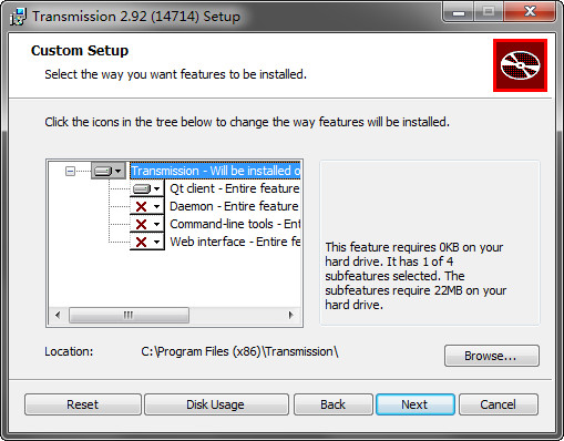 1、在起点软件园下载并打开transmission.exe软件2、开始transmission安装向导,下一步