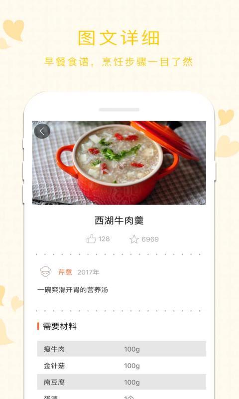 上千道菜谱,完全免费中式和西式的早餐结合,个性化的分类,方便选择