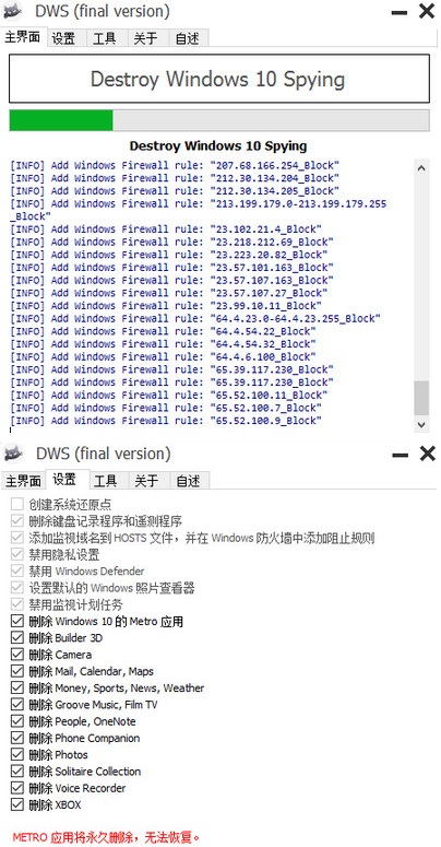 为了获取用户使用状态、改进系统体验,Windows 10对个人数据的搜集大大加强,虽然微软保证绝不涉及个人私密资料,但总让人有些不放心。如果你一点也不想让微软获得这些数据,可以在系统设置、服务、组策略、注册表里关闭选项,但显然太麻烦了。这里推荐一款工具Win10间谍杀手——“DWS Lite”【软件特点】