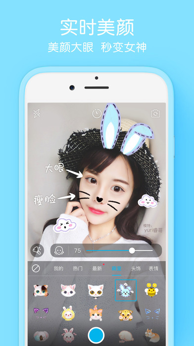 实时美颜:美颜大眼 秒变女神动效贴纸:美萌动效 脑洞玩法
