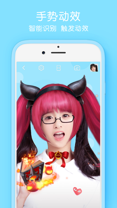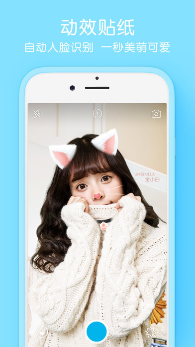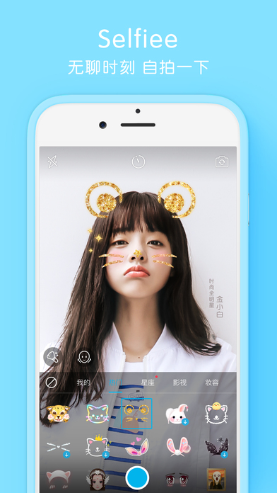 【实时美颜】美颜大眼,秒变女神。趣自拍里的你永远是美美哒!【动效贴纸】强大动效贴纸库,自动人脸识别,一秒美萌可爱,超丰富的动效贴纸库!