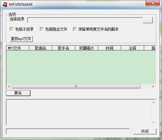 MP3RENAME是一款绿色小巧的mp3文件更名工具。MP3文件怎么改名?MP3文件改名器(MP3RENAME)轻松帮助用户。可以帮助用户的快速的对mp3文件进行改名,可以显示mp3文件的歌曲名、歌手名、所属唱片、时间、注释等信息,对指定文件进行更名,支持批量操作,是您修改文件名的好帮手,欢迎下载!【使用说明】