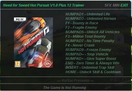 极品飞车14十二项修改器是精心为《极品飞车14:热力追踪》打造的修改器软件。极品飞车14修改器有无限生命,无限加速剂,解锁所有车辆,没有时间惩罚, 冻结敌人赛车等功能.