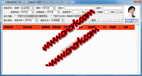 可以按行业、收录、pr、价格等各种自定义条件,搜索出符合要求的友情链接站点。