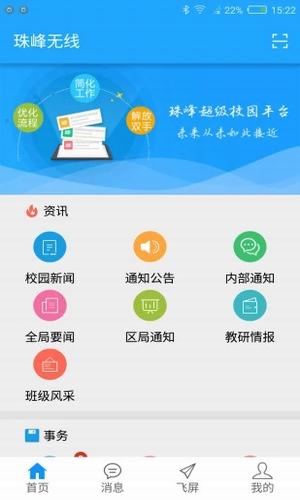 珠峰数字化校园平台手机助手。通过该助手可以查看当前所在学校的相关新闻,通知,处理待办事务,收发消息。同时拍照功能可以直接拍摄或者从相册中读取图片传递到学校平台。结合网站平台的使用能让你的课堂更精彩。另外两种登录模式能让你更快速的进入应用。【软件亮点】