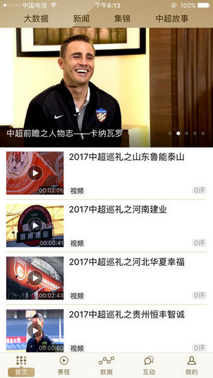 1,直播:中超每轮全部8场比赛视频直播,亚冠中国球队比赛全程视频直播,足协杯焦点赛事视频直播,最全的中国足球俱乐部比视频赛直播汇集地.2,点播:中超,亚冠,足协杯精彩进球,集锦,录播第一时间奉送,中国足球相关视频资讯滚动更新.