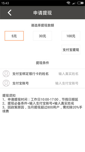 3、提现门槛真的很低,5块钱只有5块钱就能提现,欢迎来下载玩应用赚钱啦。