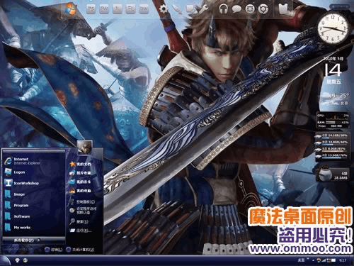 新鬼武者电脑桌面主题 简体中文官方安装版 魔法桌面原创xp仿windows7桌面主题——新鬼武者。主题以紫色为主色调,烘托新鬼武者神秘奇幻的鬼战术。本主题包含三种字体版本,默认是宋体版,您可以在“外观”-“字体大小”处切换至其他字体版本。此主题还附带精美的仿windows7登陆界面哦