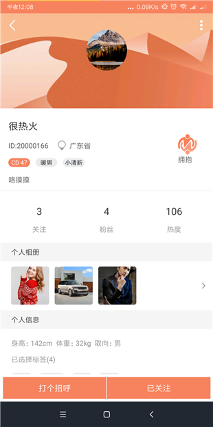 用户可以根据性别筛选,查看附近的人的列表。同时也可以根据热度,来查看当前活跃的小伙伴,并可以向他们打招呼,发消息